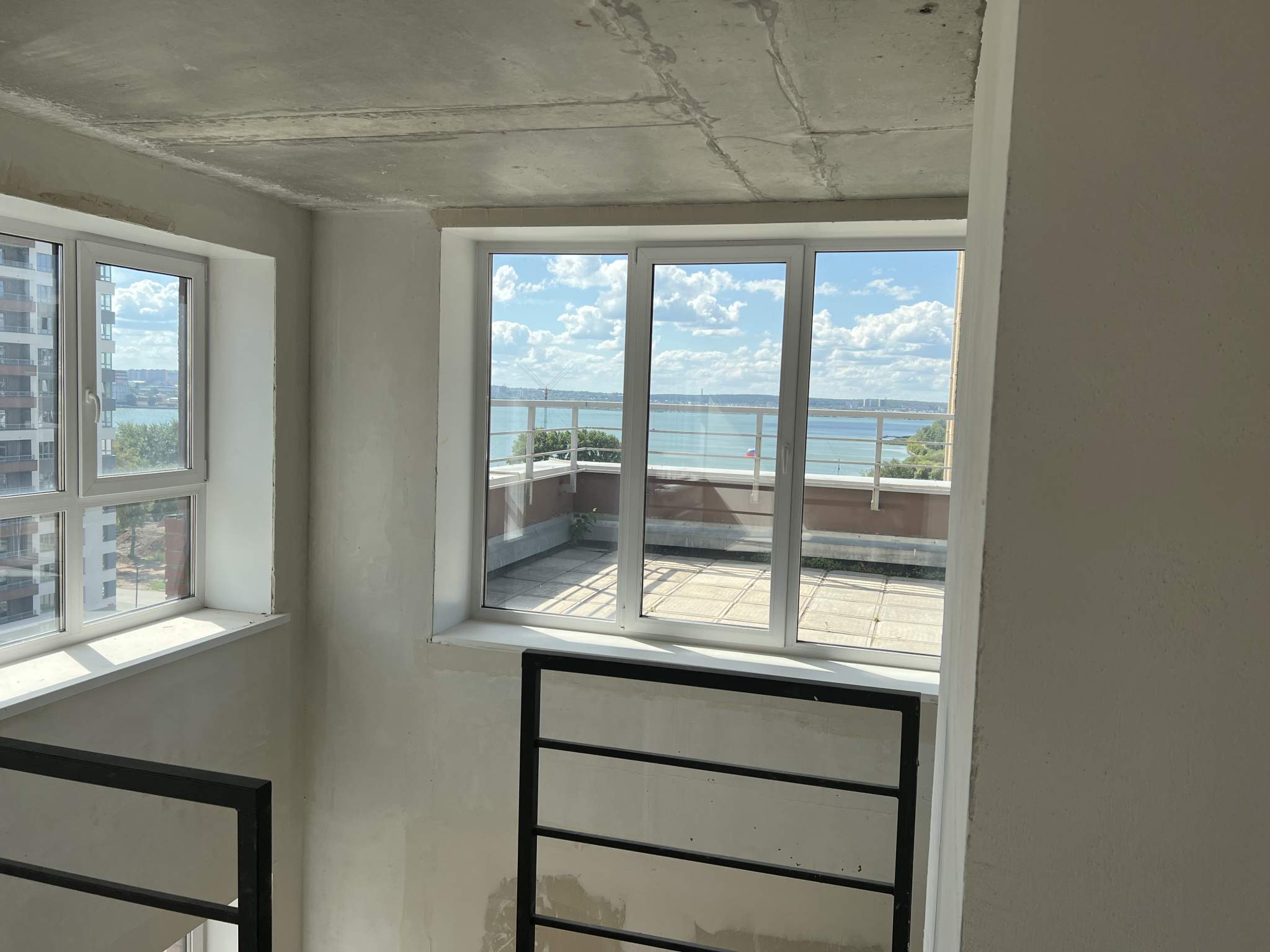 ЭКСКЛЮЗИВНАЯ ВИДОВАЯ ДВУХЭТАЖНАЯ КВАРТИРА С БОЛЬШОЙ ТЕРРАСОЙ (46м2) С ВИДОМ НА ПРУД. Продается 3-комн. квартира свободной планировки, площадью 123.2 кв. м, район Октябрьский. Возможен вариант покупки с использованием ипотечных средств. Жилая площадь 45 кв. м, кухня 27 кв. м. Раздельных санузлов - 2, совмещенных санузлов - 1, балконов - 1, окна выходят на пруд. Большая терраса с видом на пруд. Квартира располагается на 7 и 8 этаже 8-этажного монолитно-кирпичного дома в ЖК ЖК «Ривьера парк» 2021 года постройки, высота потолков 2.75 м. Дом оборудован грузовым и пассажирским лифтом, закрытая территория. Подземная парковка, парковка охраняемая. Обеспечение безопасности: видеонаблюдение, круглосуточная охрана, пропускная система. Инфраструктура: школа, детский сад, детские площадки, спортивные площадки, места для отдыха, рестораны, коммерческие объекты.